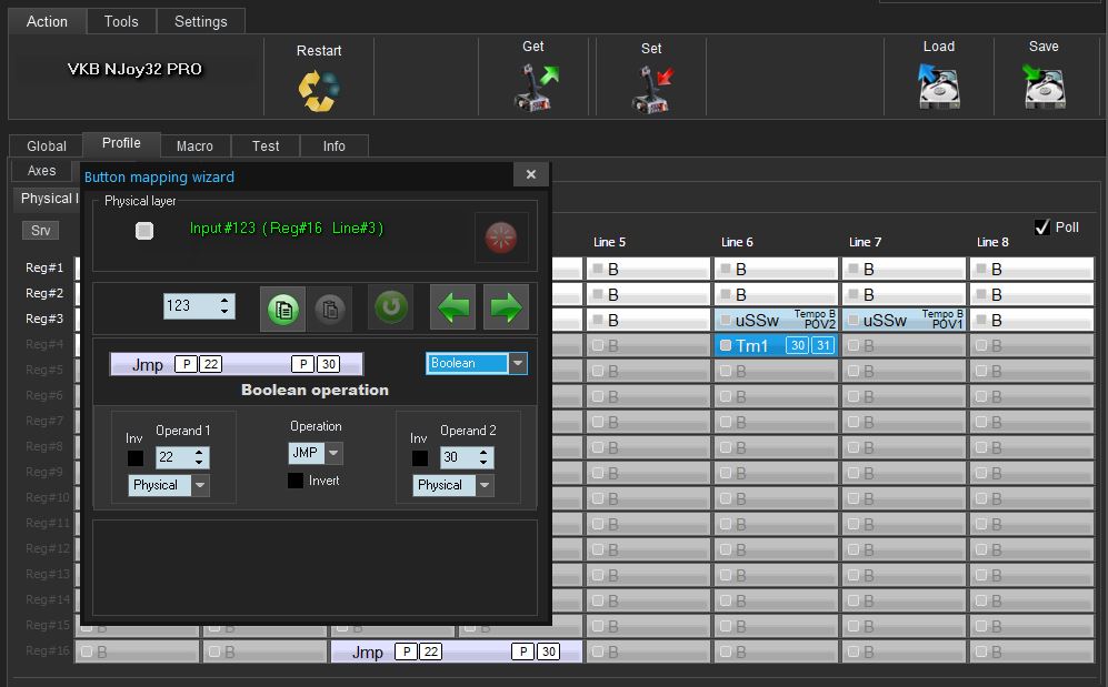 Make Boolean as JMP to link Physical button 22 to Physical button 30: