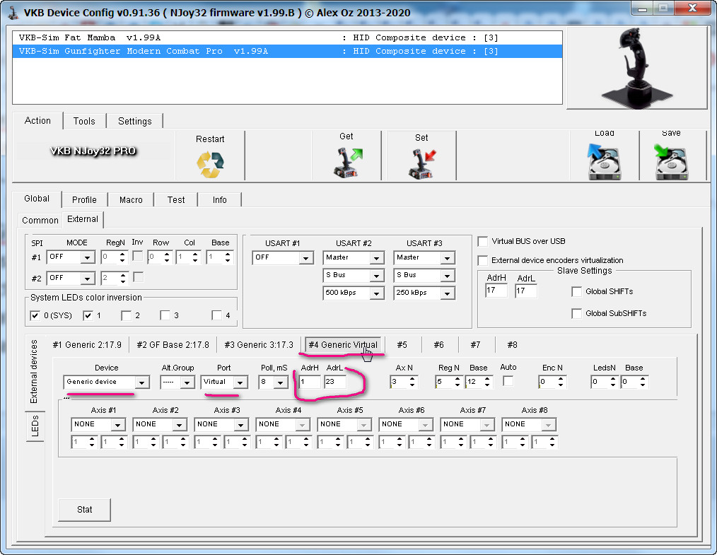 Select master. Open Global - External tab. Open device tab. #4 in my case. DO NOT change existing devices!!!