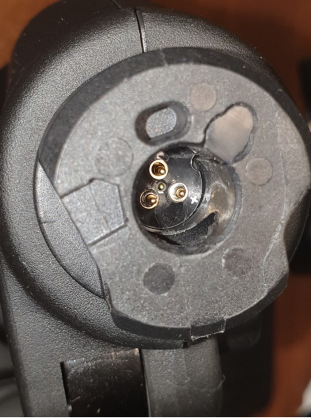 А раньше была? Покажите фото контактных площадок в ручке и на штоке базы. Первым делом проверить пружинные контакты, нет ли залипшего пина.