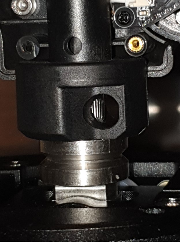 Не должно быть даже малейшего зазора между ручкой и нижней плоскостью штока. Запустив конфигуратор (и даже не устанавливая сухари для фиксации) в Test-External Devices можно сразу определить, есть контакт с базой или нет.