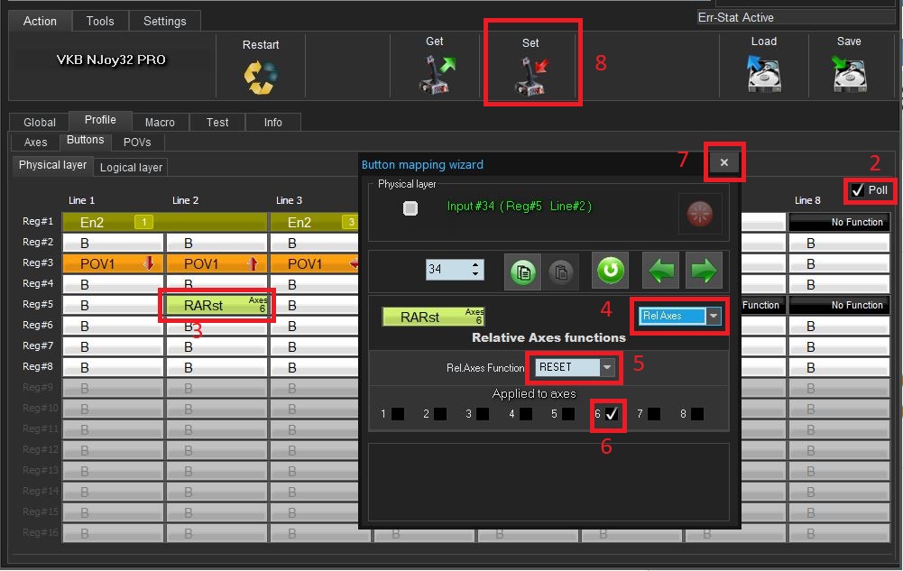 - 2. check the Poll option and click on your joystick button that you want to use to reset the axis;