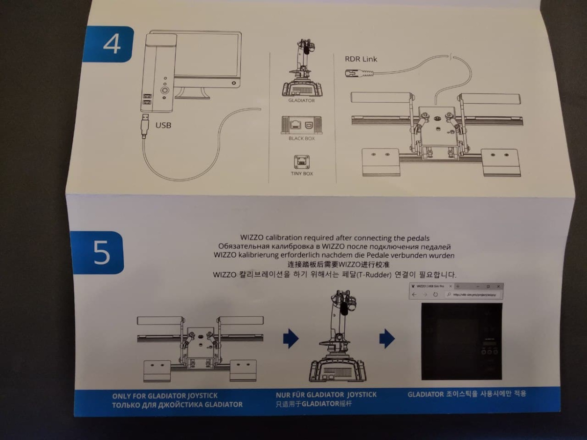 UPD: Удалось заставить работать педали при использовании DevCfg программы (только там смог откалибровать). Wizzo абсолютно никак не регирует, даже Wizzo 1.0, скачанный с англоязычного ресурса. Даже в инструкции шаг 5 гласит, что педали можно просто подключить к Gladiator и джойстик будет выступать контроллером вместо BlackBox. 5-й шаг просто так не работпет. Пока что мне удалось заставить работать педали как отдельное устройство через BlackBox, но работать с подключением к Gladiator MKII пока педали не хотят. Возможно вам следует пересмотреть инструкцию, которая лежит в коробке, так как она не полня и там всё сводится к Wizzo, где педали не распознаются.