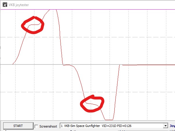 The second one seems to work better, the rubber doesn't go back to the regular position so easily. However, Y-axis movement requires more force before reaching max positions because several layer of rubber are along the way. I marked this moment on the joy tester screenshot I attach. So, Y-axis is not as perfectly linear as X-axis. I use space-soft cams and #10 springs, so it does make a difference.