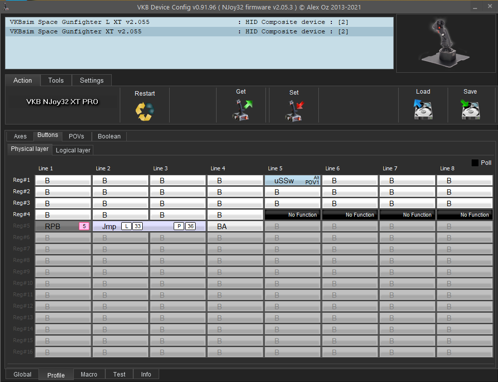 Please help. I just upgraded the firmware on my SCG's to v2.055. I would like to use the mini-stick as a virtual mouse when a button is pressed. I understand how to do this, but I can not stop the axis or POV reporting when the virtual mouse is active.