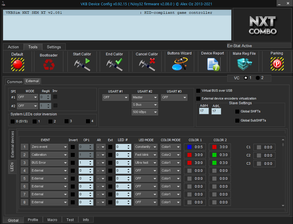 I just got my SEM (desktop) module with HID and I have a few questions about LEDs.