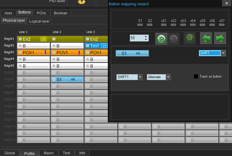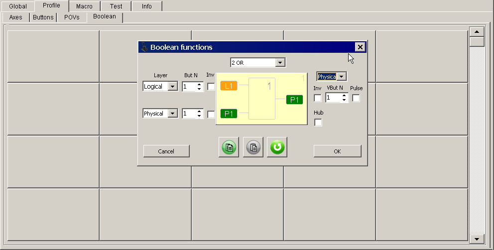 - Profile->buttons->physical : physical 11 to logical 11 as a simple button. I assume it is supposed to according to the cell that was set in the Boolean tab?