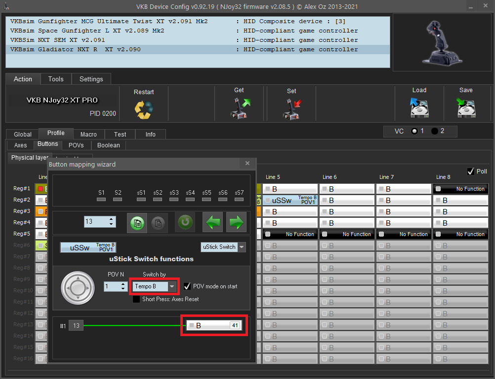 6. change the name as reported by USB. This may seem strange, but when playing games via DOSBox, the button mapper displays the string. With two VKB sticks, all I get is "VKB-Sim © Alex Oz 2021 VKBsim" and the rest is truncated. I'd like to be able to set it to something shorter so I can tell the two sticks apart. (This may not be possible, as it may be being pulled from a Linux VID:PID database and not actually reported by the stick).