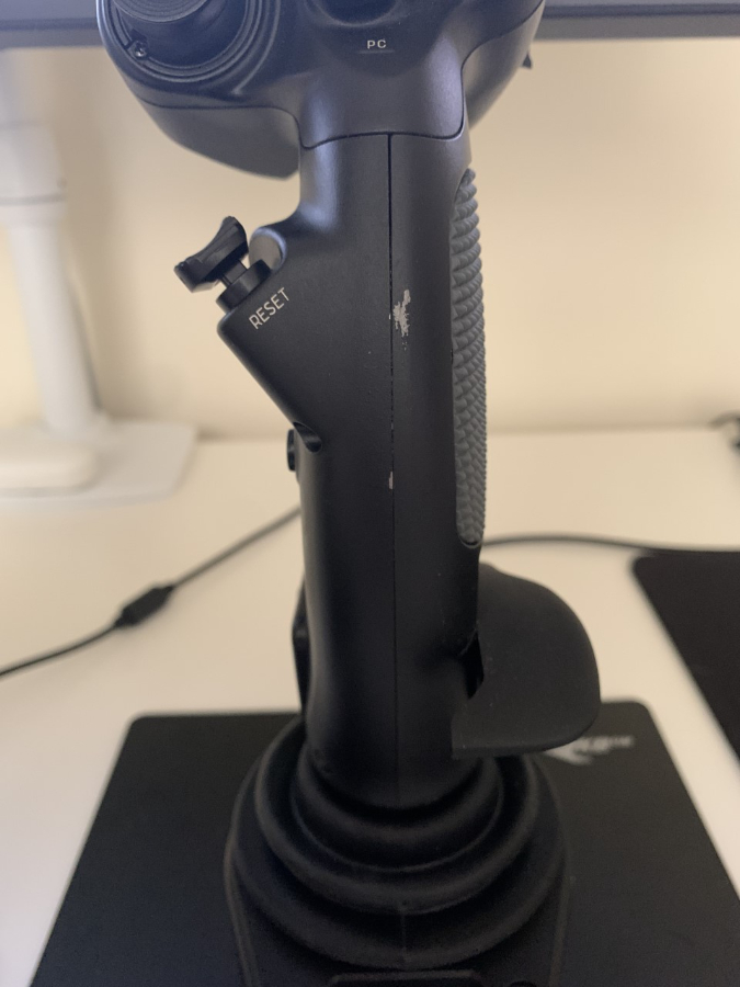 I noticed the paint is peeling off my MCG Ultimate grip. Its starting to flake off where my palm rests on the front. The seam is starting to lose more and more paint. I've only had this grip a few months and I only use water and a paper towel to wipe it down once in a while. I have taken pictures of the paint peeling. I live in a home with air conditioning and the room my flight stick is in is climate controlled. I've enclosed a couple of pictures of where the paint is peeling off. I notice its started running down the seam.