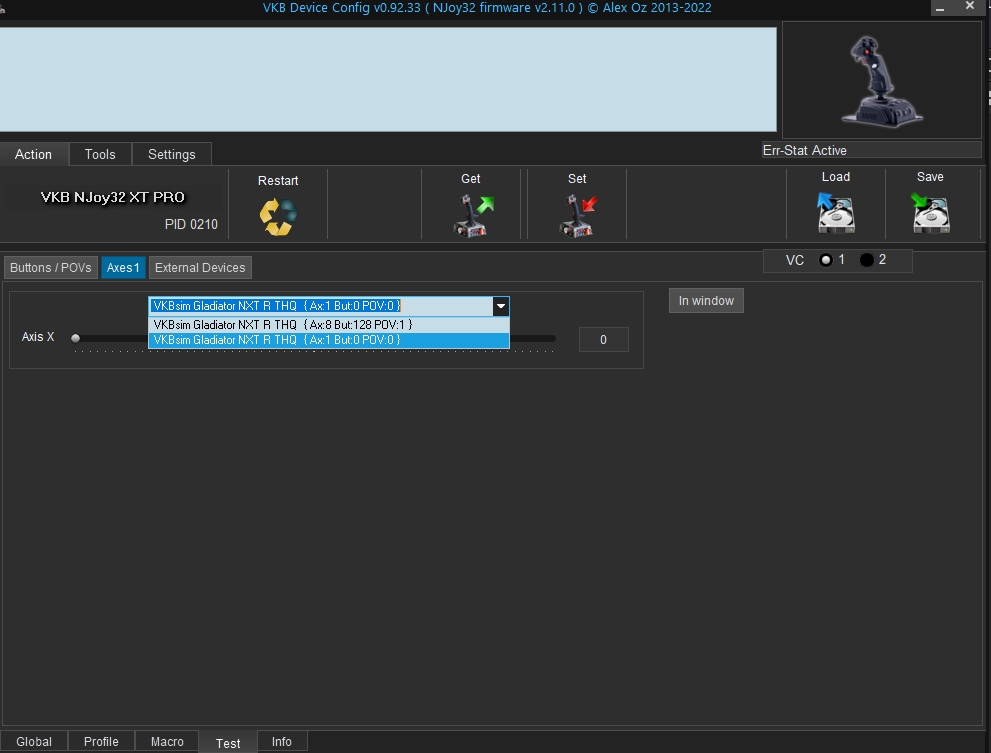 Проблема такова: Имеем Gladiator NXT и THQ соединенные между собой. Ранее они определялись Виндой и VKB config и имели разные имена (VKBsim GladiatorNXT R THQ и VKBsim GladiatorNXT L THQ
