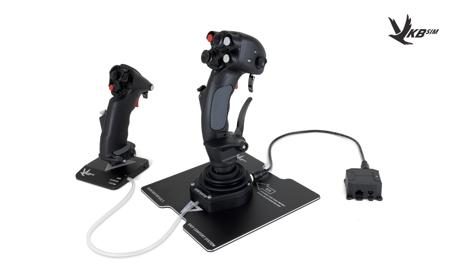 VKB Gunfighter B.E.T. comes with Grip Comfort System that creatively utilizes heat generated by the polymer: this system can pre-heat the grip before your gaming session begins, and the rest of the time it will keep your drink hot for the duration of flight. Heat-conductive liquid (same as used in computer cooling; not supplied due to shipping restrictions – support your local store, order your favorite color from them!) runs from the main unit to the grip stand for heat exchange, and through a two-way valve returns through the same tube to recycle.