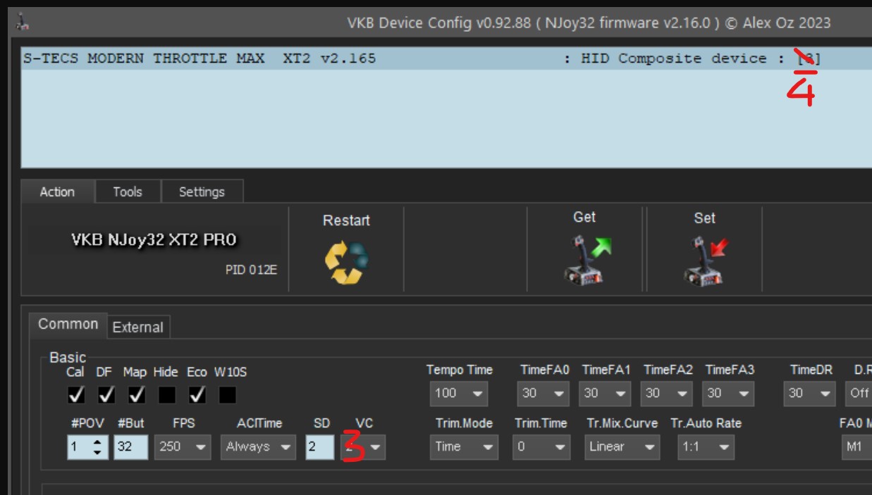 As described, I set the number of buttons setting to 32 and VC number to 2: