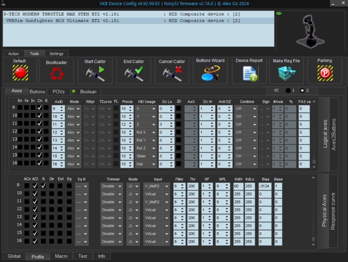 Проблемная ось министика проблемного гнезда это порядковый номер 4, AxID 4, HID Usage Rot Y, отображаемая на вкладке Test как Rot Y.
