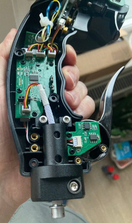 Итак, пришла KG-12 (до ревизии, с гладкой ручкой). На всякий для идентификации вот фото внутренностей ручки и контроллера: