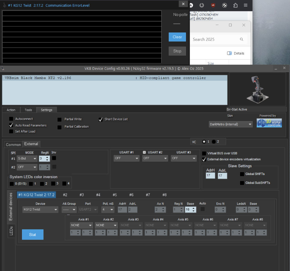В итоге ничего не работает, нажатие ни одной из кнопок не отражается в конфигураторе. Прошивка VKBsim Black Mamba XT2 v2.196. Есть ли мысли, что я сделал не так?