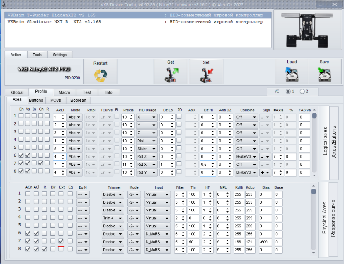 Victorus: I loaded that profile into VKBDevCfg for the t-rudders, which now shows this when I run the test -> misc -> green "play" button test: