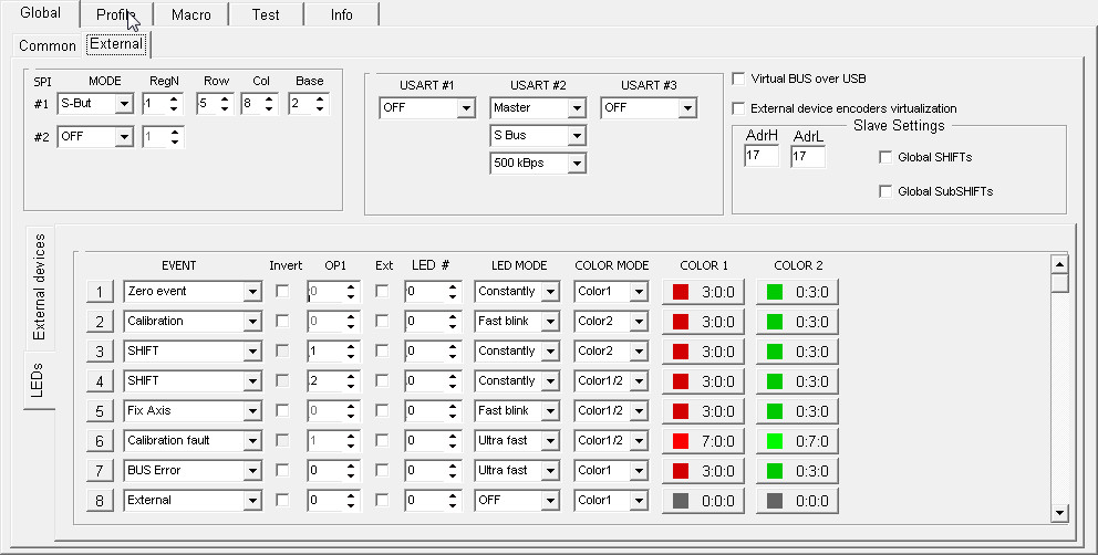 Thank you for the reply Victorus. I can now see the tab you have shown in your screenshot, however no matter what I set the LEDs to in the device config they never change the lights on the black box. For example I have set them all to 0 0 0 and it still shows green lights for Stick Bus and Pedals on the Black Box for the right stick but just the Blue sys light and the stick green light on the left stick.