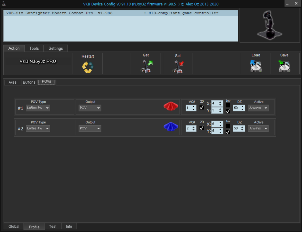 Here is my current configuration. As an aside, I also set the microstick on the MCG to be on VC #2 because I didn't want to lose the use of those physical axes.