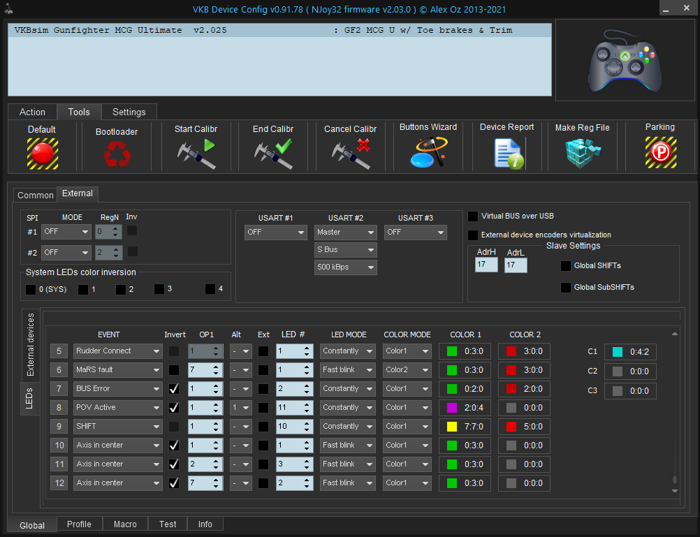 who could explain OP1 - Alt and Led# ? how to set the both leds on ultimate stick ?